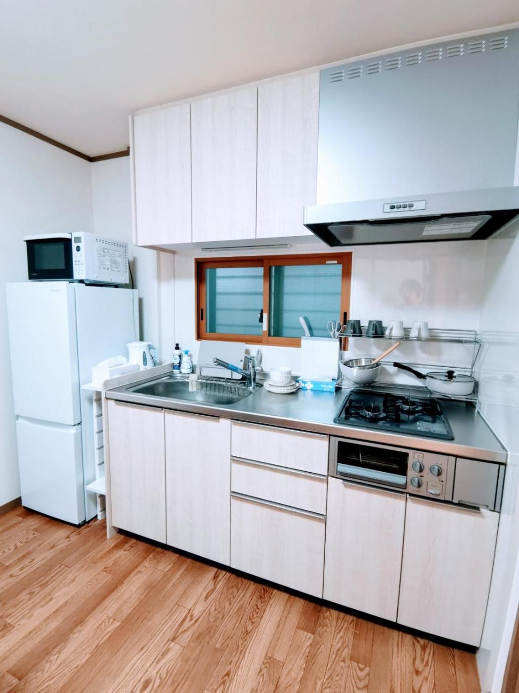 One-Bedroom Apartment. This air-conditioned apartment includes 1 living room, 1 separate bedroom and 1 bathroom with a bath. The apartments kitchen, which features an electric kettle, is available for cooking and storing food. This apartment has a washing machine, tatami, a flat-screen TV and a balcony. The unit has 2 beds and 2 futons.