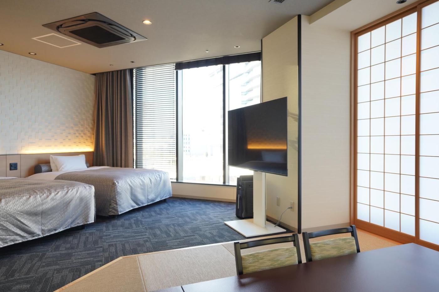 Standard Twin Room with Sea View. Providing free toiletries, this twin room includes a shared bathroom with a bath, a shower and a hairdryer. The air-conditioned twin room provides a flat-screen TV, a tea and coffee maker, a safe deposit box, yukata as well as river views. The unit offers 2 beds. ;