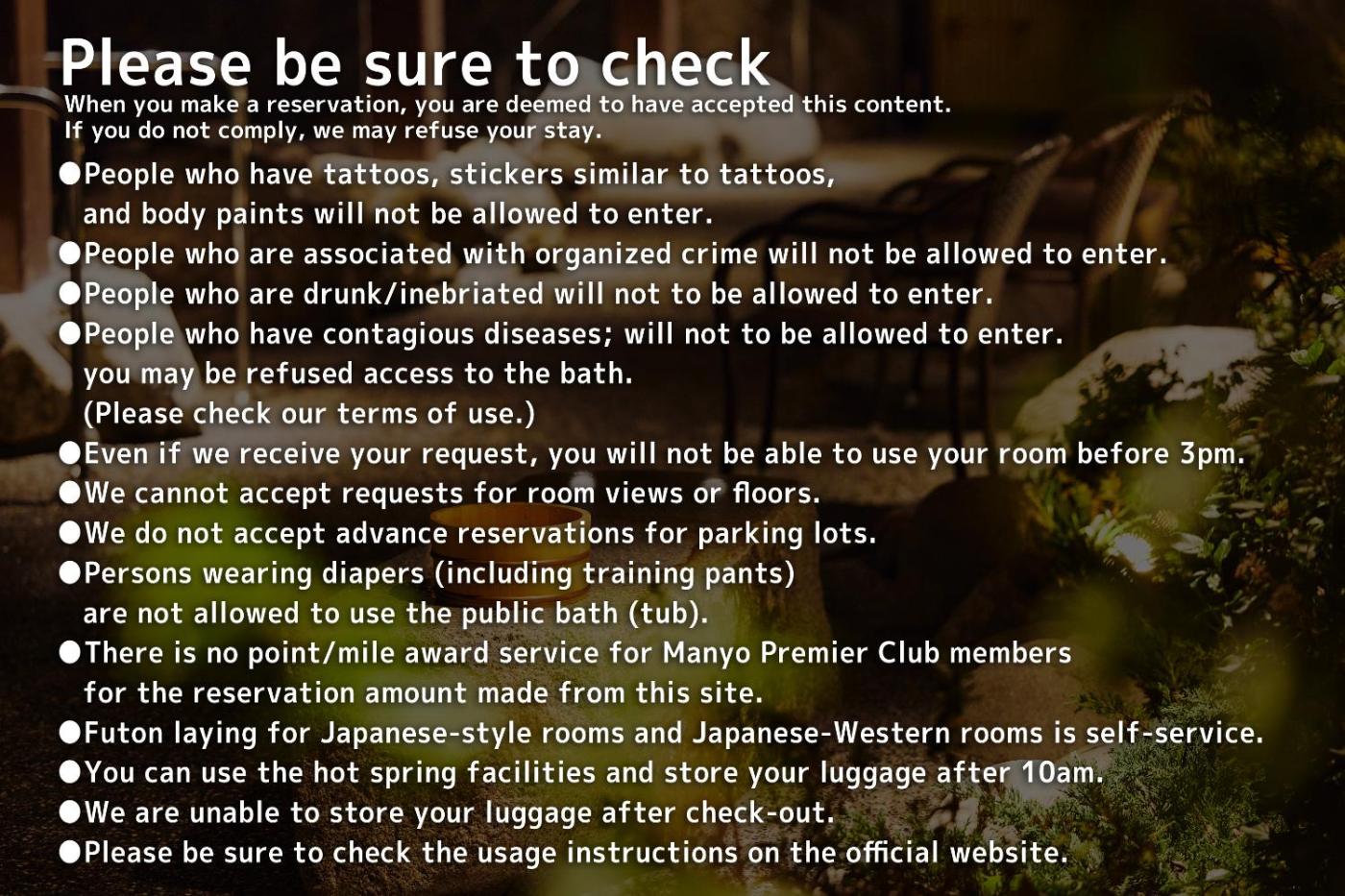 Guests with tattoos may not be permitted to use the property’s public bathing areas or other facilitiesthe tattoos might be visible to other guests.
