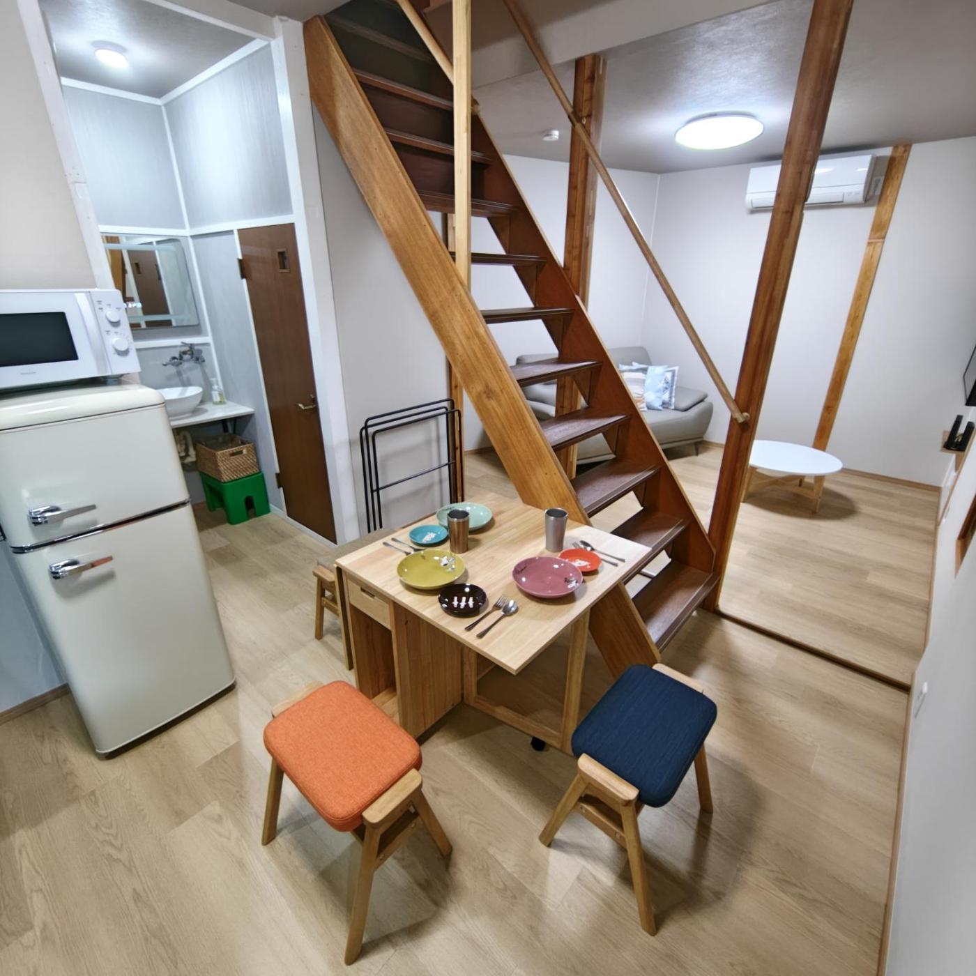 One-Bedroom Apartment. Featuring a private entrance, this air-conditioned apartment comprises a kitchen, 1 bedroom and 1 bathroom with a bath and a shower. In the fully equipped kitchen, guests will find a stovetop, a refrigerator, kitchenware and a microwave. This apartment features a washing machine, tatami, a flat-screen TV and a balcony. The unit offers 2 beds and 3 futons.