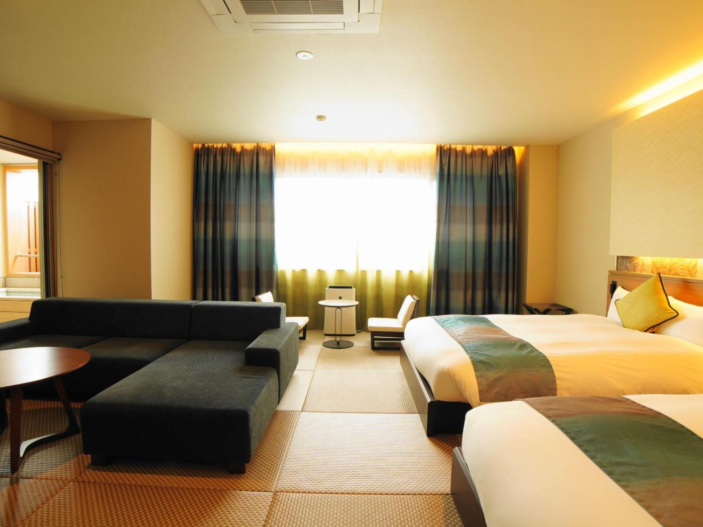 Junior Suite. The air-conditioned suite has 1 bedroom and 1 bathroom with a bath and a shower. The suite offers tatami, a coffee machine, a sofa, heating, as well as a flat-screen TV. The unit has 2 beds. ;