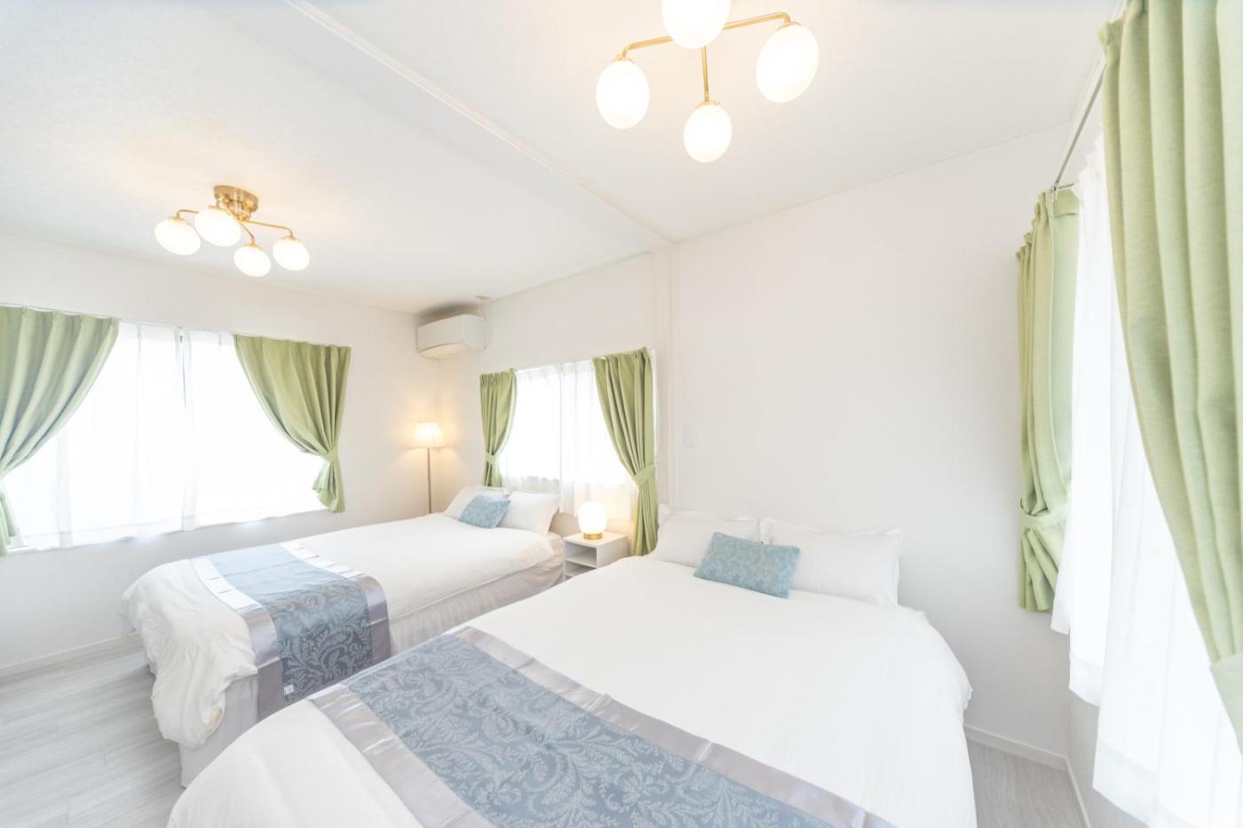 Three-Bedroom House. This holiday home features a hot tub. Boasting a private entrance, this air-conditioned holiday home features 1 living room, 3 separate bedrooms and 1 bathroom with a bath and a shower. Guests can make meals in the kitchen that has a stovetop, a refrigerator, kitchenware and a microwave. The holiday home has tatami floors and features a washing machine, a dining area as well as a terrace with garden views. The unit has 5 beds and 3 futons.
