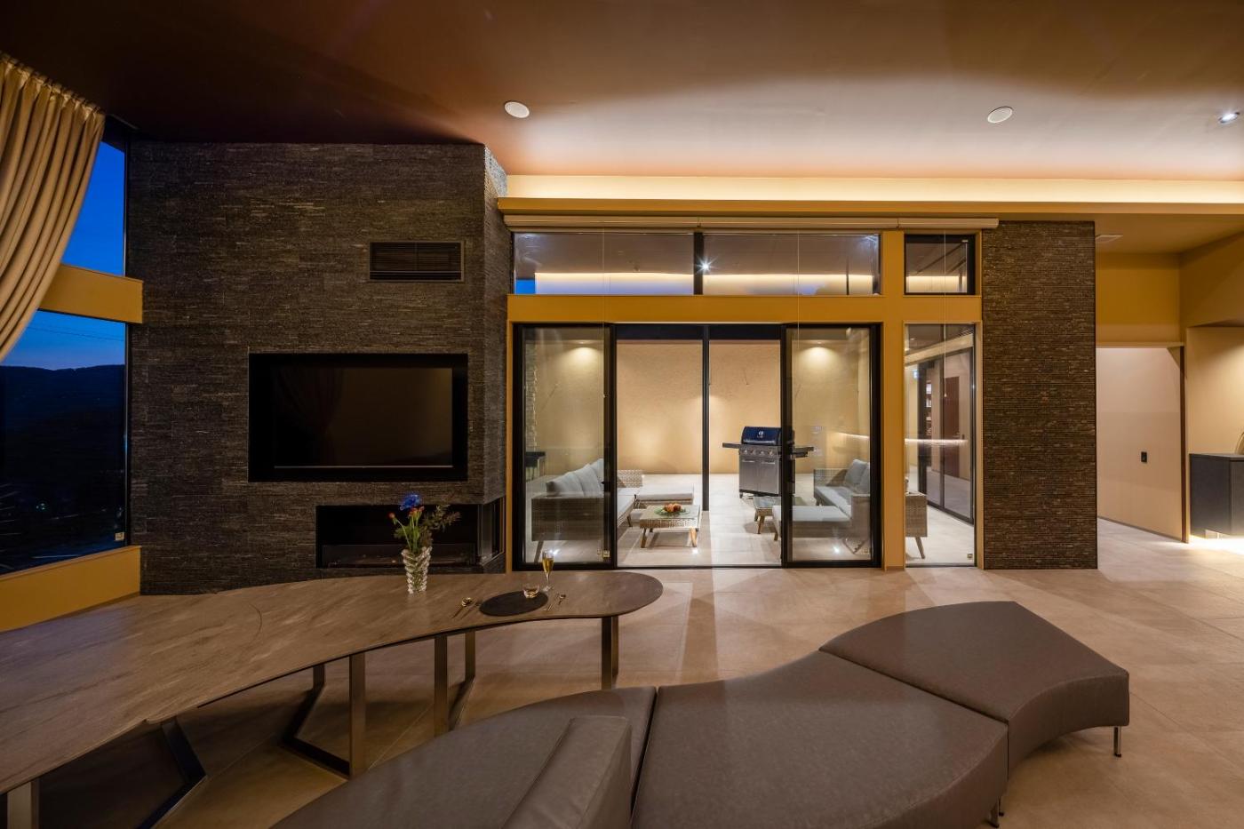 Three-Bedroom Villa. This villas standout features are the private open-air bath and fireplace. This villa includes 1 living room, 3 separate bedrooms and 1 bathroom with a bath and free toiletries. Guests will find a stovetop, a refrigerator, a dishwasher and an oven in the well-fitted kitchen. The villa also features a barbecue. The air-conditioned villa offers a flat-screen TV with streaming services, soundproof walls, a minibar, an electric kettle as well as sea views. The unit has 12 beds.